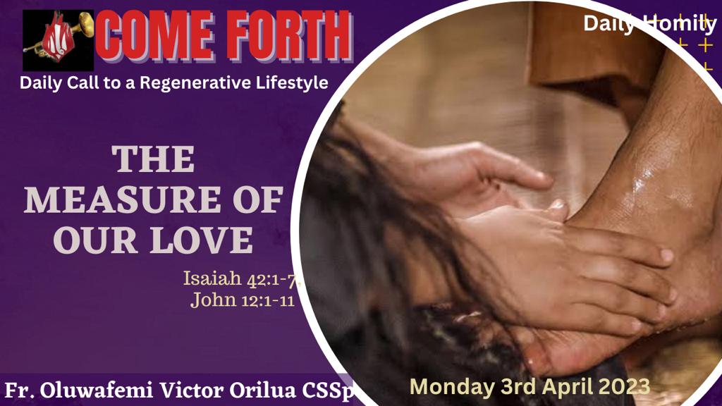 HOMILY OF MONDAY OF THE HOLY WEEK Isaiah 42:1-7, John 12:1-11 THEME: THE MEASURE OF OUR LOVE QUOTE: Authentic love can never be...